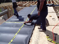 Acoustiblok can also be installed over the floor joist before the sub floor is attached to reduce the sound from walking (Impact Noise) as well as the noise created in the room. Some builders have installed Acoustiblok on the roof trusses to reduce the noise from low flying airplanes or busy highways. Another application is to wrap plumbing pipes to quiet the sound of running water. Obviously there are many more applications of Acoustiblok within a home to obtain sound abatement. Please contact our office to discuss your particular noise problem. |